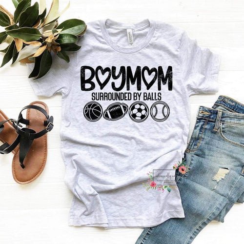 Boy Mom surrounded by balls