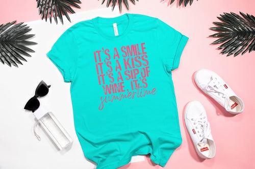 Smile, kiss, sip of wine, summertime